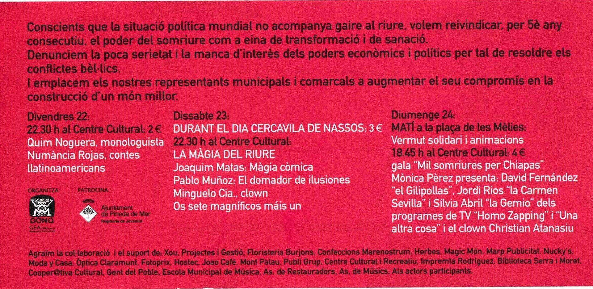 El Somriure es Alegría, que es la Magia de la Solidaridad, y con los Derechos Humanos por objetivo, que son la Salud de la Comunidad.